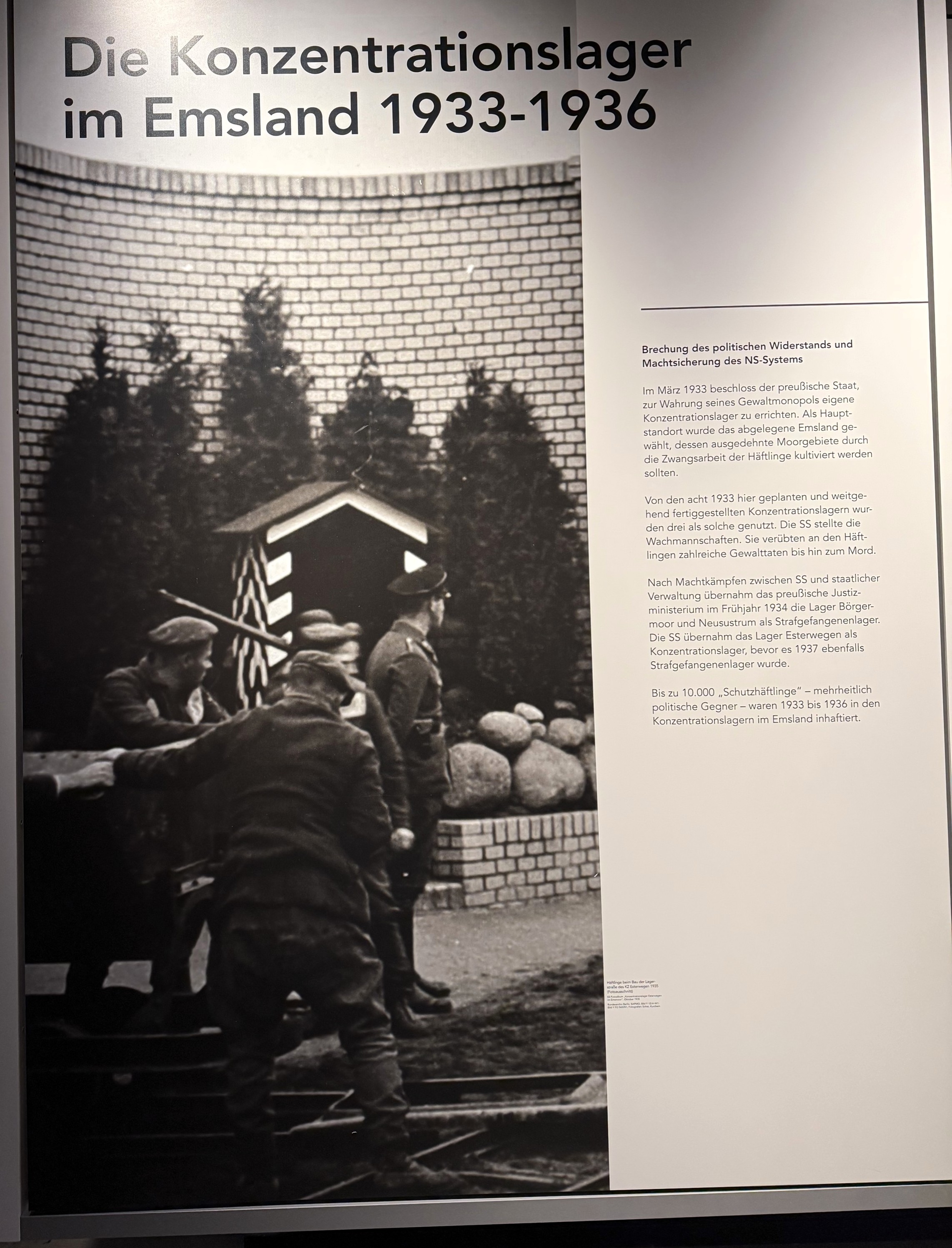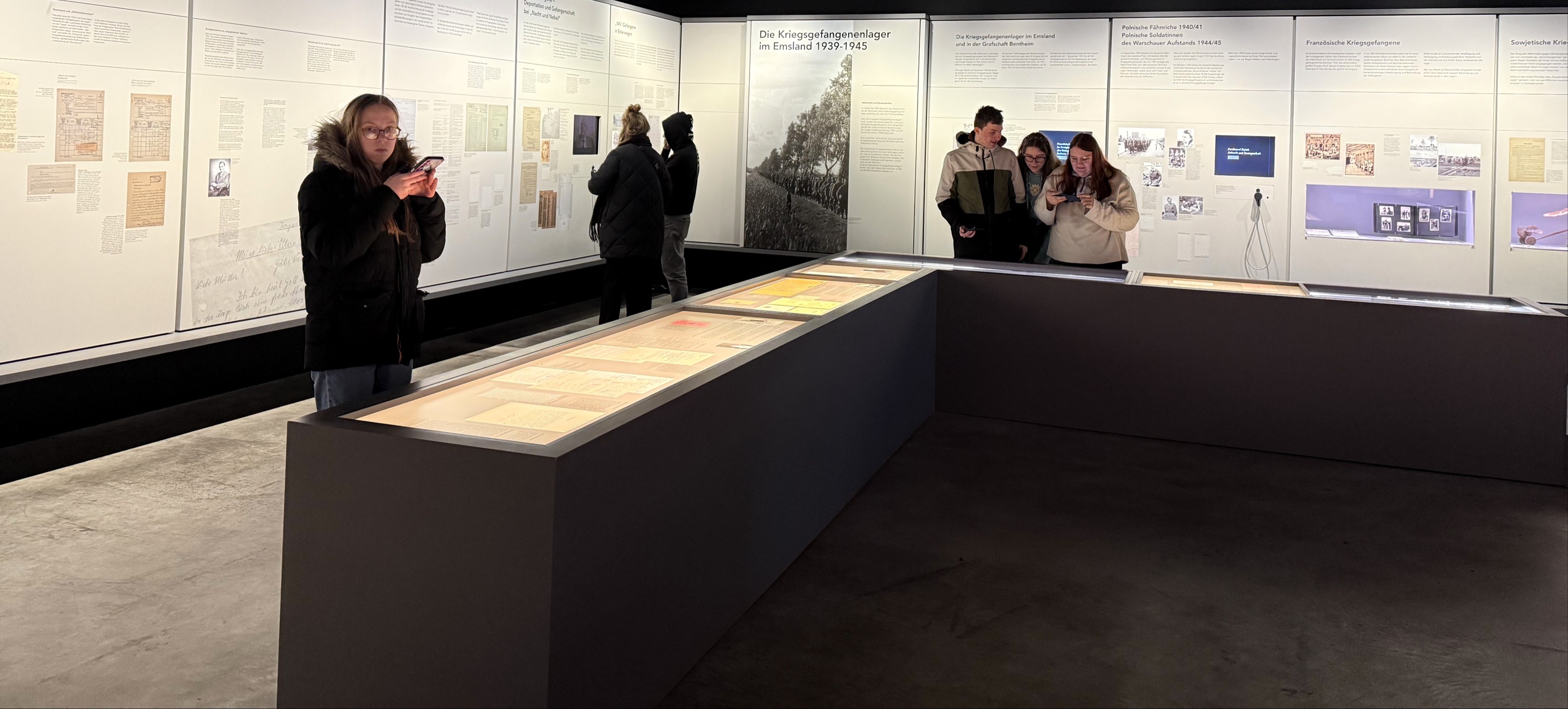 Zu Beginn erhielten die Schüler*innen einen bebilderten Vortrag über die Geschichte der Emslandlager. Es handelte sich um insgesamt 15 Lager, die zwischen 1933 und 1945 im Emsland und in der Grafschaft Bentheim bestanden. In diesen Lagern waren zunächst politische Gegner des NS-Regimes inhaftiert, später auch Kriegsgefangene und andere Häftlinge. Der Vortrag vermittelte viele Hintergrundinformationen über die Lebensbedingungen der Gefangenen und die Funktion der Lager im nationalsozialistischen System. Im Anschluss folgte eine Führung über das ehemalige Lagergelände. Die Gruppe konnte dabei die historischen Orte kennenlernen und erfahren, wie der Alltag der Gefangenen aussah. Die Führung machte deutlich, unter welchen schwierigen und unmenschlichen Bedingungen die Menschen in den Lagern leben und arbeiten mussten. Zum Abschluss besichtigten die Schüler*innen die Ausstellung der Gedenkstätte. Dort werden persönliche Geschichten von Häftlingen, historische Dokumente sowie Fotos und Gegenstände aus der Zeit der Lager gezeigt. Die Ausstellung half dabei, die zuvor gehörten Informationen noch besser zu verstehen und sich mit den Schicksalen einzelner Menschen auseinanderzusetzen.