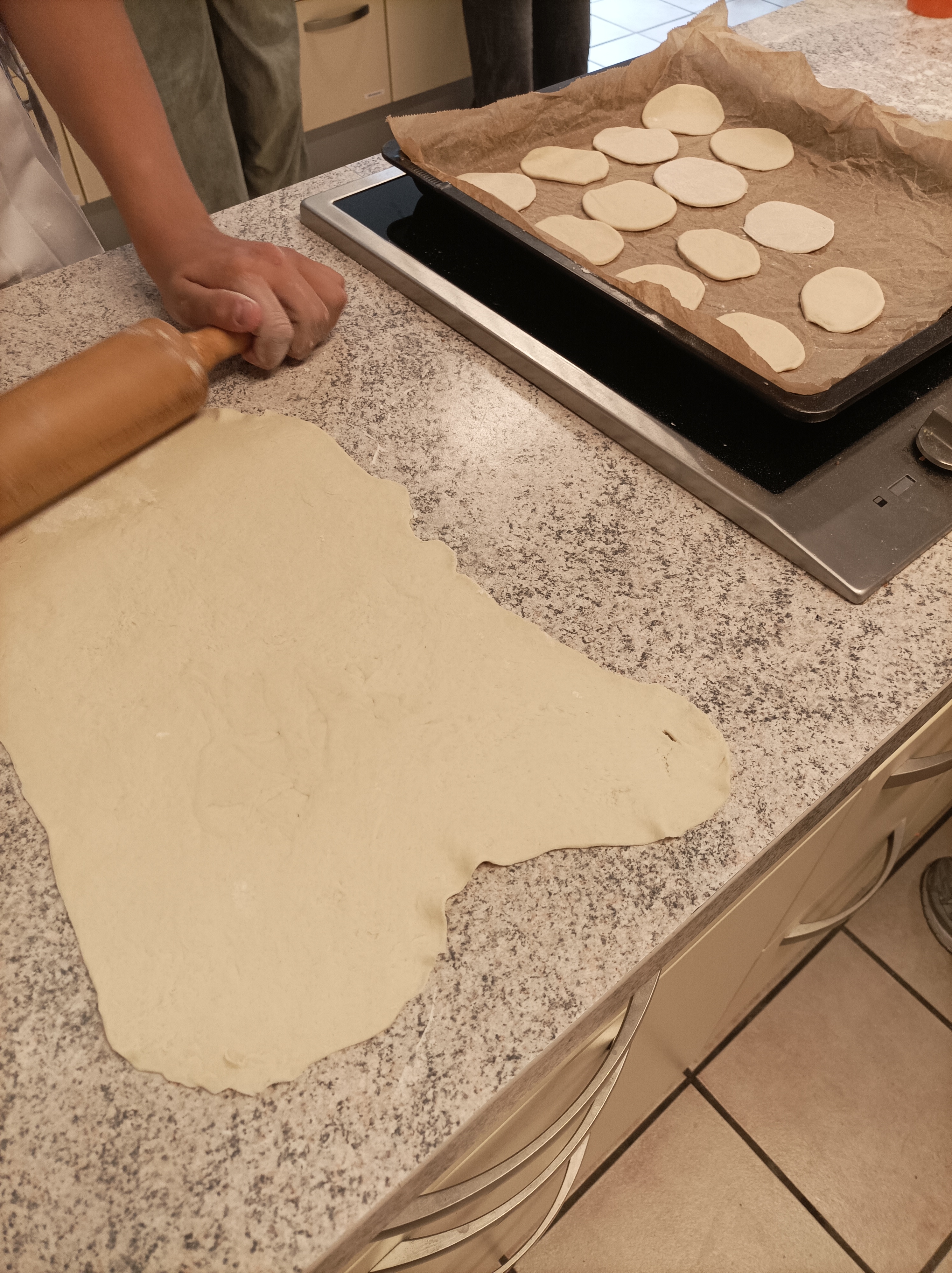 Anschließend wurden verschiedene Rezepte in unterschiedlichen Schwierigkeitsstufen erprobt. Gemeinsam entstanden köstliche Gerichte wie Kartoffelpfannkuchen, Kartoffelsuppe, Ofenpfannkuchen, Lasagne, Pizza-Taler, Waffeln, Pudding, Brote und Dips.